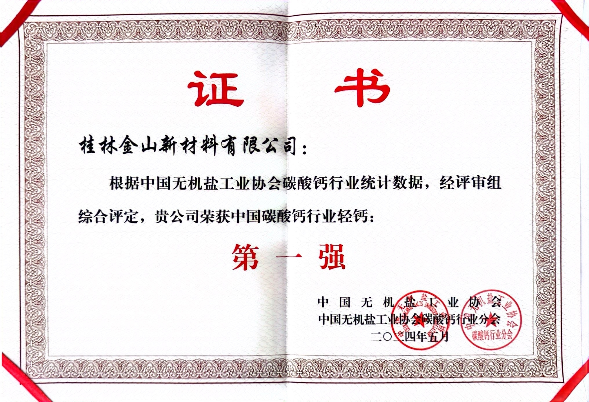 喜報!!我公司喜獲全國碳酸鈣行業輕鈣第一強、納米鈣四強!